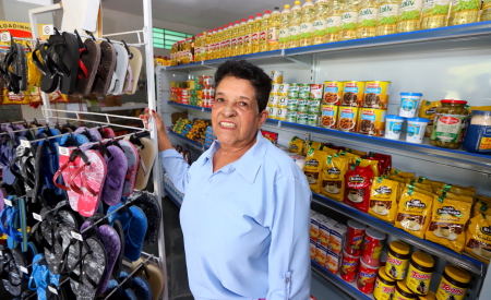 Uma das empreendedoras que já recorreu ao Banco do Povo de Jacareí, por quatro vezes, é a Maria do Socorro Araújo, que possui uma mercearia no Parque Imperial há cerca de 20 anos.