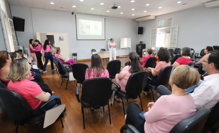 A ação teve como tema “Ressignificar a vida além da cura”, com o testemunho de Evelise Siqueira, que compartilhou a sua história com o público presente. “Foi um dia de vestir uma peça de roupa na cor rosa, assistir a palestra, e fazer parte de um movimento importante de conscientização sobre a prevenção do câncer de mama”, destacou a secretária de Administração Giliani Rossi, que convidou todos os servidores para a iniciativa.