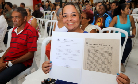 Legenda: Fim da espera! Após mais de 40 anos, Prefeitura de Jacareí entrega títulos de regularização fundiária aos moradores do Rio Comprido