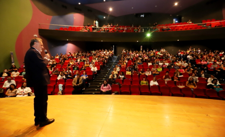 O Teatro Ariano Suassuna (Complexo Educacional Paulo Freire) recebeu nesta segunda-feira (10), cerca de dois mil educadores, entre professores, equipes gestora e técnica da rede municipal, para o evento de lançamento do programa de 2023, “Jacareí Matematic@ndo ODS” (Objetivos de Desenvolvimento Sustentável), da Secretaria Municipal de Educação.