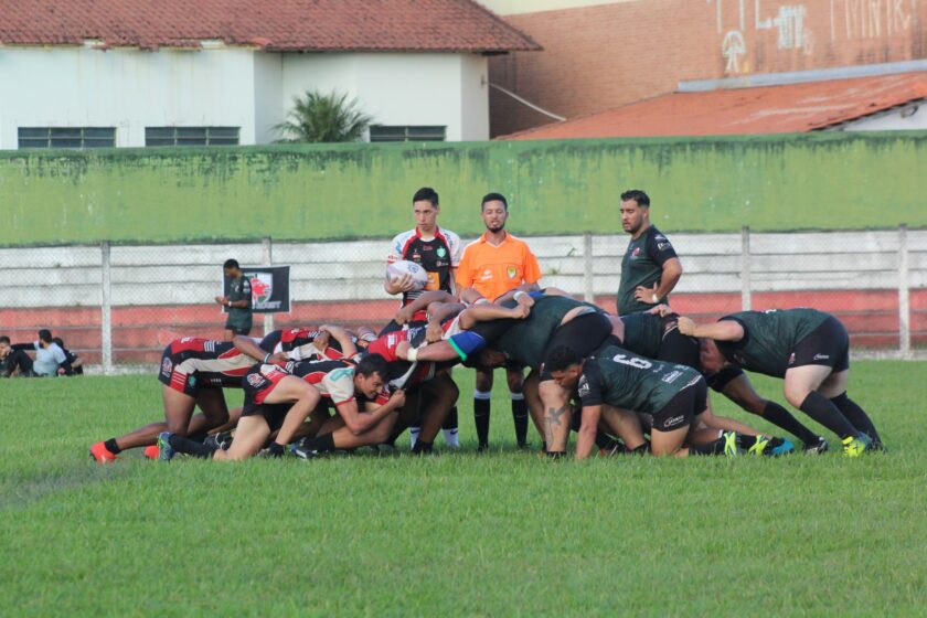 Legenda: Scrum para o Jacareí Rugby em duelo contra o Pinda pela segunda rodada da Copa Caipira (Foto: Ícaro Leal/Jacareí Rugby)