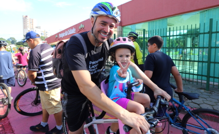 Já o comerciante Alexsandro Augusto Rodrigues, que levou a filha Rafaela Dias, de três anos, já é adepto do esporte e encontrou no evento uma forma de inspirar a menina a gostar e praticar atividade física desde cedo. “É o primeiro pedal da minha filha, e junto comigo. É um prazer enorme participar. Eu já gosto e agora quero incentivar ela também”, falou o comerciante.