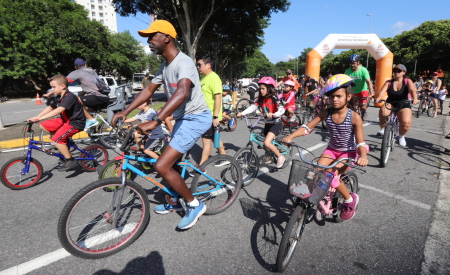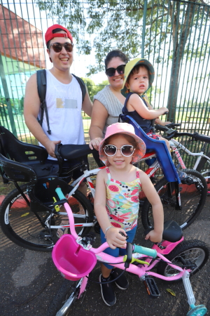 Thiago Henrique Alves Carvalho, analista de manutenção, levou os filhos Eduarda Cristina, de cinco anos e Thomaz Henrique, de um ano. Como moram perto do Parque da Cidade, sempre frequentam o local para andar de bicicleta, principalmente a filha de cinco anos, Eduarda. Foi a primeira vez que o Thomaz participou da brincadeira com a família.