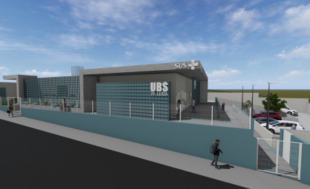 Legenda: Imagens em 3D do projeto da unidade de saúde que será construída no Jardim Luiza