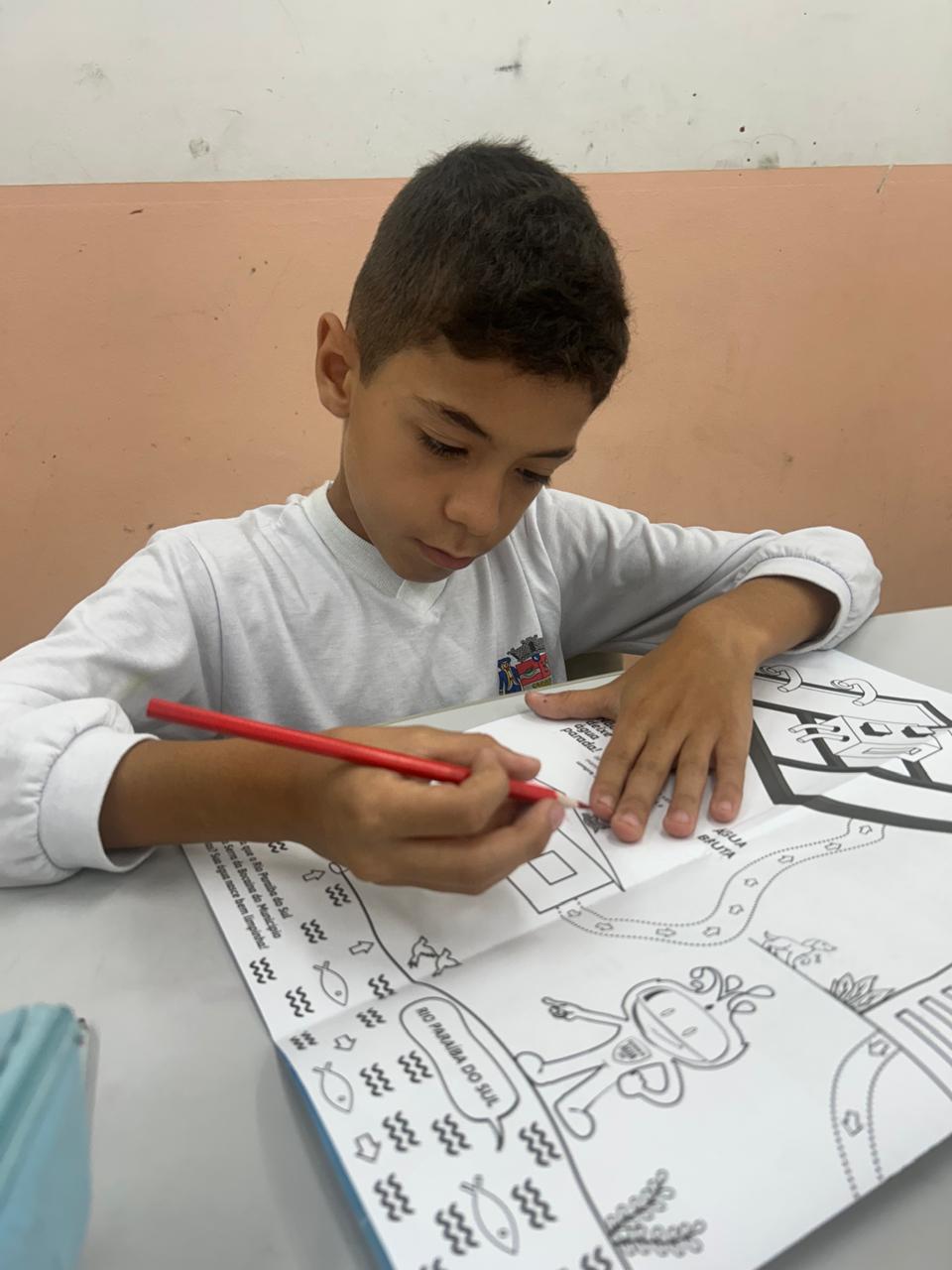 Luís Fernando Araújo Fernandes, 8 anos, alunos da EMEF Beatriz Junqueira, no distrito do Parque Meia-Lua recebeu a cartilha com entusiasmo. “Achei a cartilha muito bonita e vou pintar todinha ela”.