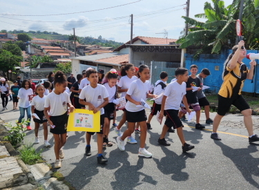 Alunos da rede municipal de Jacareí participam de caminhada e orientação aos moradores contra a dengue, nesta quinta-feira (29)