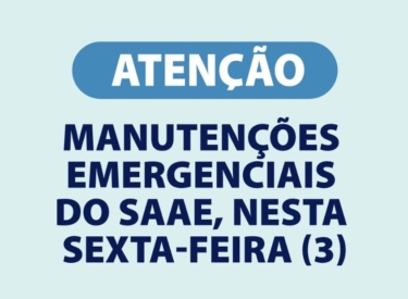 Atenção! Manutenções emergenciais do SAAE nesta sexta-feira (3), nos bairros Jardim Bela Vista, Bandeira Branca, Jd. das Indústrias e região