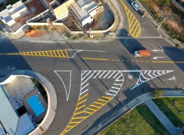Santana do Pedregulho recebe pintura e placas de sinalização viária, em Jacareí