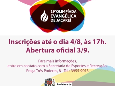 A Prefeitura de Jacareí, por meio da Secretaria de Esportes e Recreação, realizará, nos dias 22 e 29 de julho, o ‘RecreaParque’, um evento recreativo voltado para crianças e jovens, aberto ao público, no Parque da Cidade (Av. Eng. Davi Monteiro Lino, 489, Centro). A programação tem início às 15h, com diversas atividades, como circuito recreativo, […]
