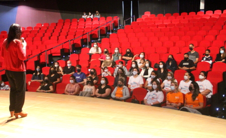 Legenda: Professores, ADIs e parceiros se reúnem em evento no Teatro Ariano Suassuna, em Jacareí