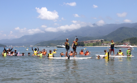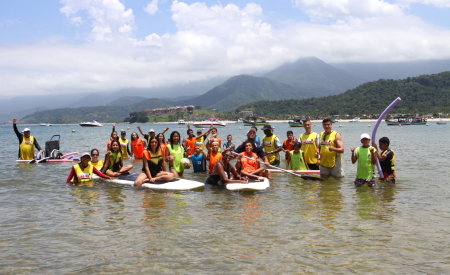 Alunos tiveram a oportunidade de passar um dia no Litoral Norte, participando de diversas atividades esportivas, como futebol, vôlei e stand-up