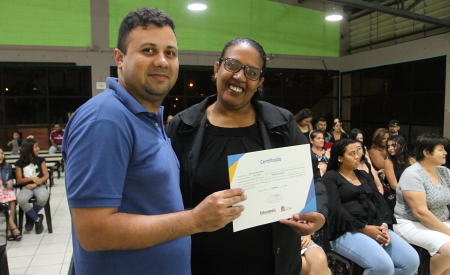 A Secretaria Municipal de Educação realizou o quarto dia de cerimônia de entrega de certificados de conclusão dos cursos profissionalizantes do segundo semestre de 2019. O evento ocorreu na última quarta-feira (11), na EMEF Professora Conceição Aparecida Magalhães, localizada no bairro Jardim Paraíso. Neste evento foram entregues aproximadamente 40 certificados para participantes dos cursos de Manicure e Informática.