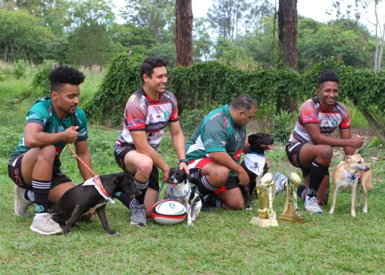 A equipe campeã do Jacareí Rugby e 12 cães do Centro de Observação Animal (Canil) participaram de um ensaio fotográfico, promovido pela ONG Bicho Feliz, na última quarta-feira (1º), no Campo do Balneário (rua Miami, 300, Cidade Jardim), para a confecção de um calendário de 2018 com o tema “Essa Turma é de Raça”.