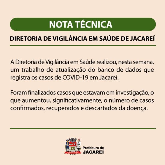 Vacina – Até o momento, 555.312 vacinas contra a Covid-19 foram aplicadas em Jacareí (209.496/1ª dose, 140.529/dose de reforço e 205.287/2ª dose e dose única). Clique aqui para mais informações sobre o andamento da Campanha de Vacinação no município.