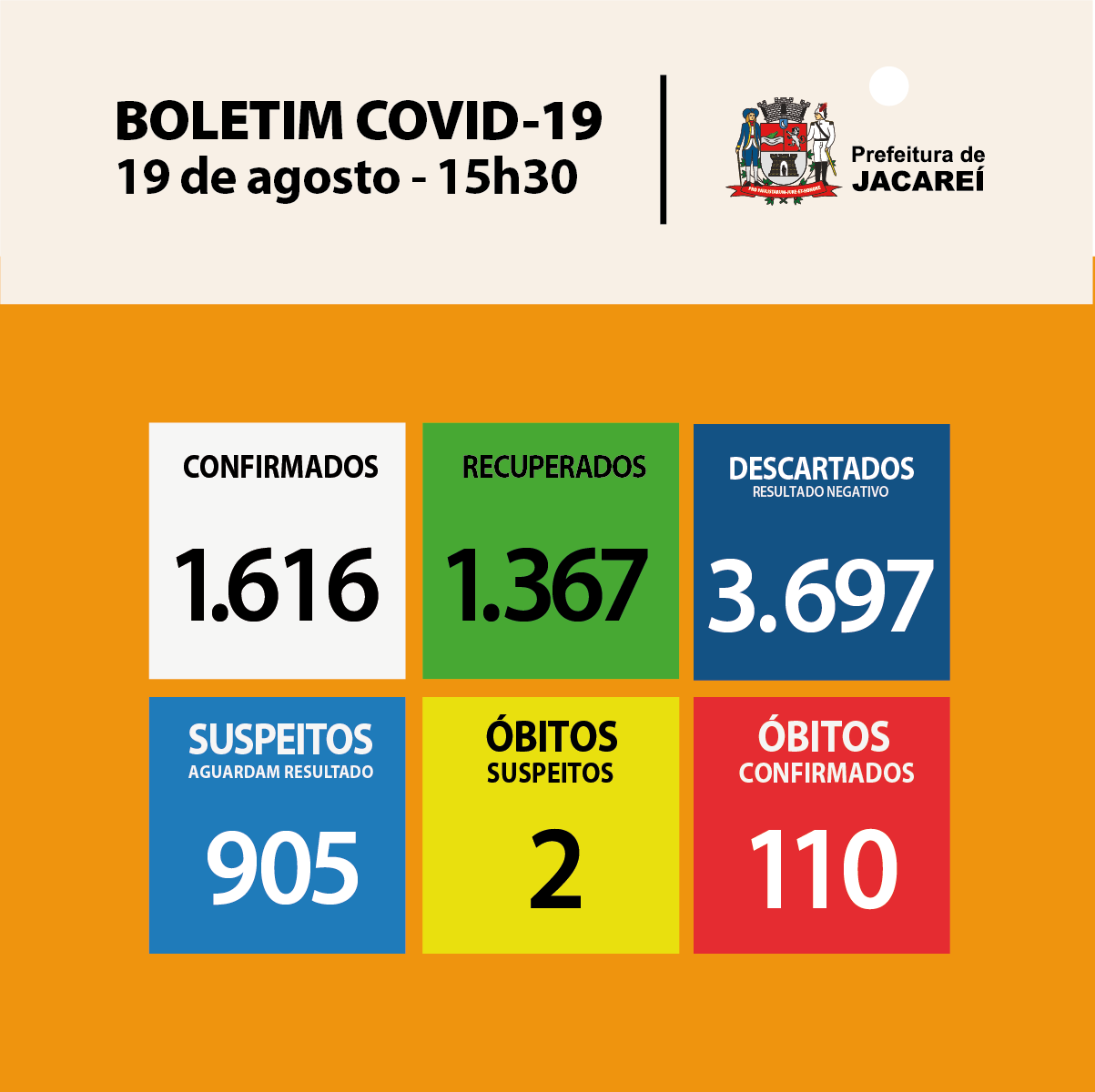 * NOTA TÉCNICA DA VIGILÂNCIA À SAÚDE: informamos que, em razão dos elevados números de lançamentos de notificações, associados às novas interações dos sistemas de registro dos casos de COVID-19 no município, agravados pelo volume acumulado dos resultados encaminhados por laboratórios e estabelecimentos de saúde de outros municípios, detectamos duplicidade em alguns destes dados. Em razão dessa constatação, promovemos varredura no banco de dados e eliminamos os casos repetidos, resultando em redução no número total de casos confirmados de COVID-19 em Jacareí, nesta quarta (19).