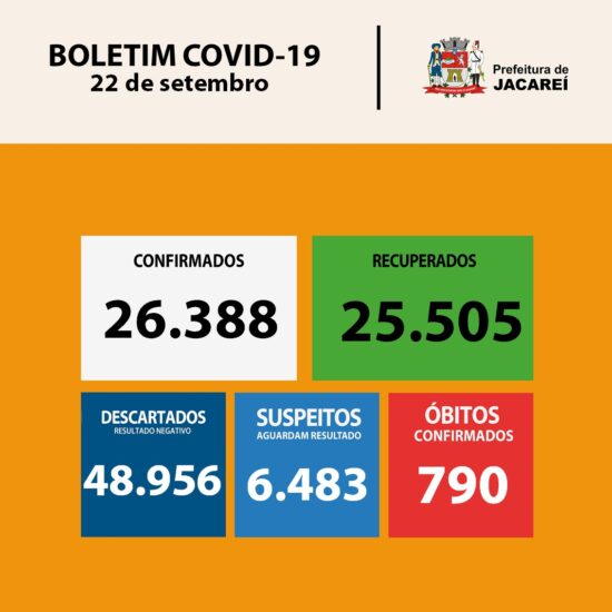 Jacareí está com 26.388 casos confirmados da doença. São 13.611 mulheres e 12.777 homens. Dos confirmados, estão internados nove (seis em hospital público – sendo dois em UTI –, e três em hospital privado – sendo um em UTI). Há 93 confirmados em isolamento (internados e em casa). E 790 óbitos até aqui.