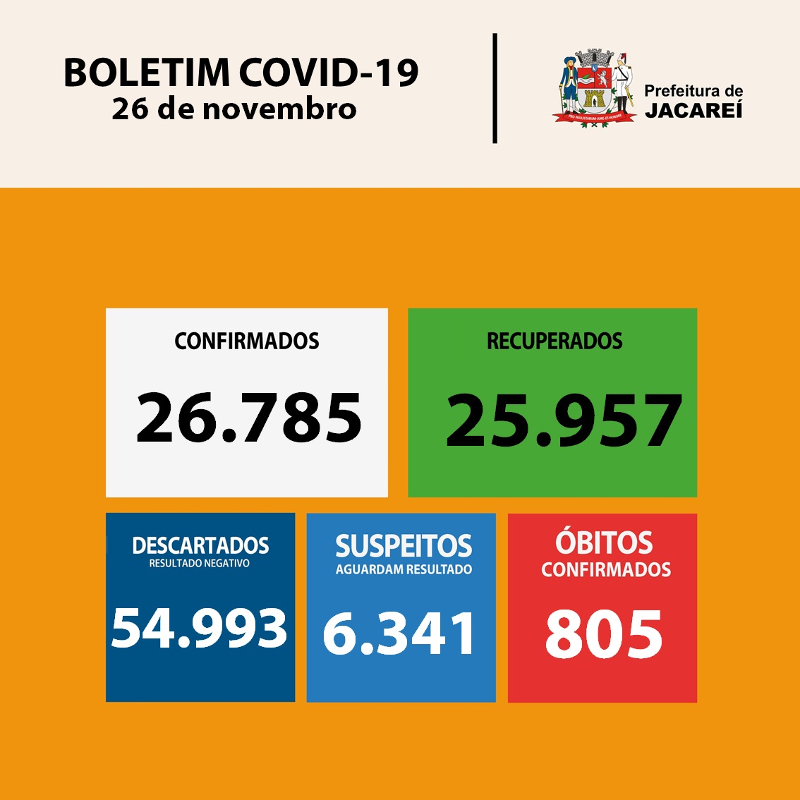 Jacareí está com 26.785 casos confirmados da doença. São 13.795 mulheres e 12.990 homens. Dos confirmados, estão internados quatro (um em hospital público – sendo um em UTI, e três em hospital privado – sendo um em UTI). Há 23 confirmados em isolamento (internados e em casa). E 805 óbitos até aqui.