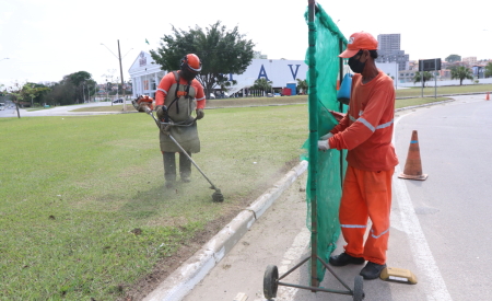 Legenda: Equipes da Secretaria de Meio Ambiente & Zeladoria Urbana de Jacareí realizando serviços nas ruas do município