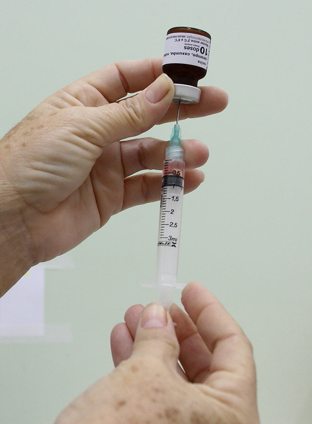 Legenda: Profissional de saúde aplicando a vacina na campanha de imunização contra o sarampo