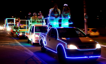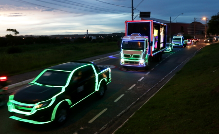 Estrutura – A caravana conta com carros iluminados, o caminhão do Papai Noel, trenzinho com personagens, viatura da Guarda Civil Municipal e da Secretaria da Mobilidade, além de convidados especiais.