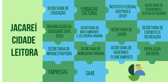 Para realizar o Jacareí Cidade Leitora é necessária a participação intersetorial dos seguintes atores com as respectivas atribuições: