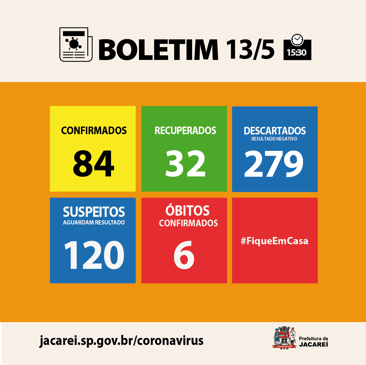 Informação – Acompanhe as informações em nossos canais oficiais: site e Redes Sociais. A Prefeitura de Jacareí seguirá seu compromisso de informar os novos números à população.