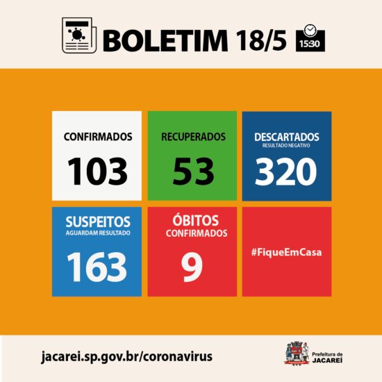 Informação – Acompanhe as informações em nossos canais oficiais: site e Redes Sociais. A Prefeitura de Jacareí seguirá seu compromisso de informar os novos números à população.
