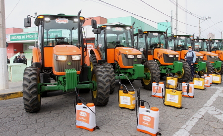 Para realizar a ação no município, estão sendo utilizados sete tratores que transportam pulverizadores de grande porte, com capacidade reservatória de até dois mil litros. E para percorrer áreas menos extensas e de acesso mais difícil, foram utilizados 15 equipamentos de costas com capacidade de 20 litros, manuseados individualmente.