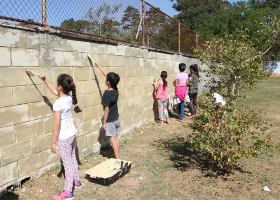 Funcionários e professores da EMEF José Éboli, além da comunidade do distrito São Silvestre se uniram nesta terça-feira (11), entre 9h e 15h, em um mutirão para a construção coletiva do sistema de captação de água da chuva, pintura do muro da escola com tinta de terra (produzida pelos próprios alunos), manutenção do espaço verde com a poda de árvores e reestruturação dos canteiros da horta da unidade.