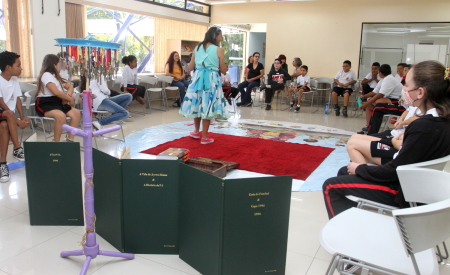 Legenda: Contação de História marca o primeiro evento de aniversário da Biblioteca Municipal Macedo Soares