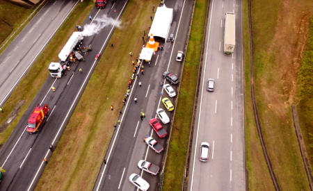 A simulação aconteceu na Rodovia Carvalho Pinto, no trecho de Jacareí, e contou com a participação de representantes da Ecopistas, Polícia Rodoviária Estadual, Corpo de Bombeiros e SAMU. Também participaram a Defesa Civil Estadual, de São José dos Campos, Caçapava, Taubaté e de Campos do Jordão.