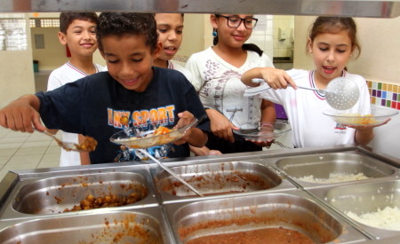 Legenda: Crianças na hora da merenda, durante período de aulas antes da pandemia