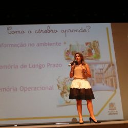 Na oportunidade, o prefeito e a secretária agradeceram a presença de todos e deram as boas-vindas aos professores. Para a abertura, foi realizada a palestra “Como meu aluno aprende? Conexões cerebrais e sociais que afetam a capacidade de aprendizagem”, com Roberta Bento e Taís Bento, fundadoras do SOS Educação, site de educação do portal Estadão, responsáveis pela coluna Escola da Revista Pais&Filhos e criadoras do perfil SOSTENHOPROVA no SNAPCHAT.