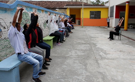 Os alunos da EJA (Educação de Jovens e Adultos) da EMEF Lamartine Delamare receberam nesta quarta-feira (14) o primeiro encontro do projeto voluntário “Todos contra o Sedentarismo”, que será realizado quinzenalmente até dezembro pela profissional de Educação Física, a Prof.ª Renata Silva Rizzetto, bacharelada pela Universidade Federal de São Paulo (UNIFESP) e especialista em Reabilitação Cardiovascular e Doenças Crônicas pela USP-INCOR.