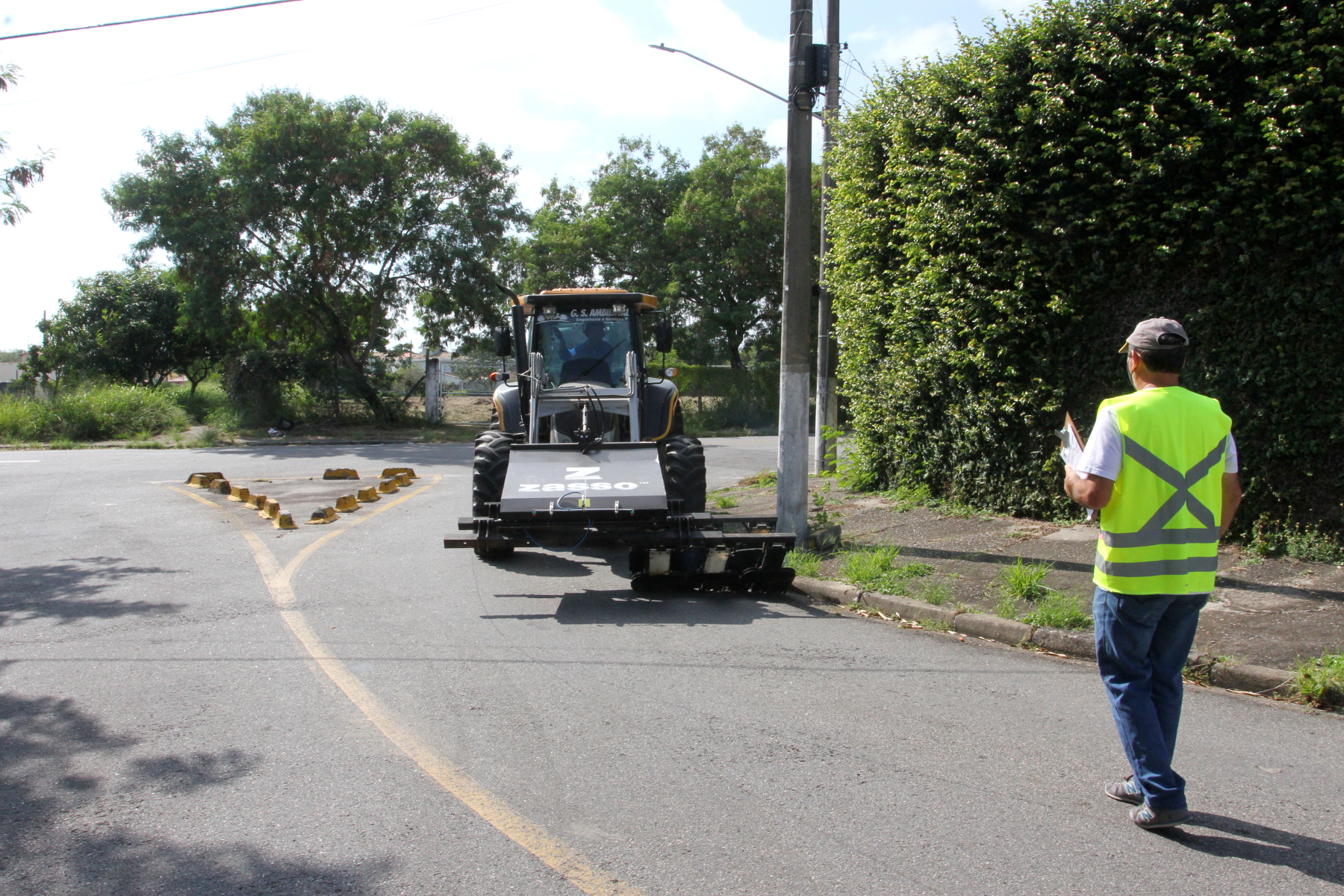 Legenda: Capina elétrica nas ruas do bairro Independência, em Jacareí