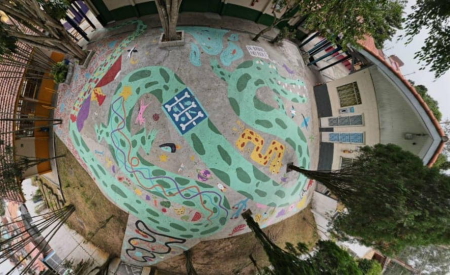 O pátio, agora, está todo colorido com desenhos, brincadeiras no chão e atividades nos arredores. O trajeto foi desenvolvido pela dupla de artistas Tubão e Carol, por meio de uma parceria entre a escola e o coletivo artístico “De brink’s no rolê”.