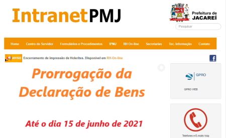 - Pela intranet: acesse http://intranet.jacarei.sp.gov.br e clique em “RH online”. Pelo site da Prefeitura: acesse www.jacarei.sp.gov.bre clique em “Servidores” (no Menu).