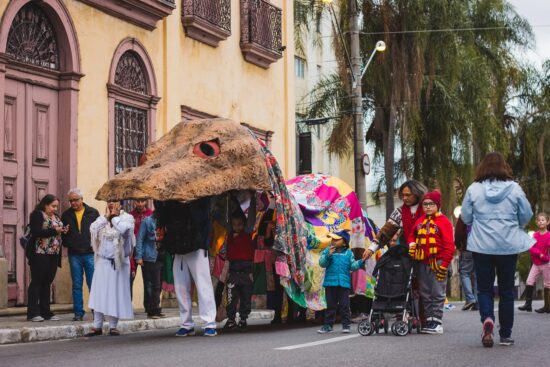 Nos dias 26, 27 e 28, teremos contação de histórias com contos e causos da nossa cultura valeparaibana, um espetáculo teatral encenando personagens de lendas antigas jacareienses e, o tradicional Cortejo da Cobra Grande.