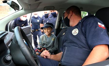 Naquela tarde de sábado, o garoto Alan foi surpreendido pela visita dos guardas civis municipais que chegaram em três viaturas. E, enquanto cumprimentava os guardas civis, ele foi surpreendido novamente ao receber vários pacotes com presentes. Depois de abrir as embalagens, com toda alegria, agradeceu os guardas com um grande sorriso e um “muito obrigado”.