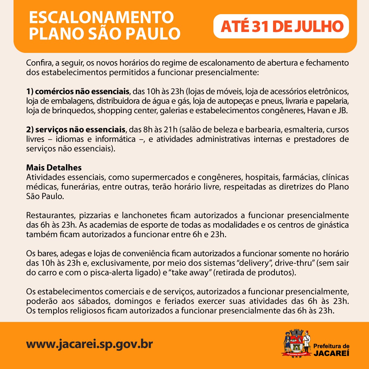 O Governo do Estado de São Paulo anunciou na quarta-feira (7) a prorrogação até 31 de julho da ‘Fase de Transição’ do ‘Plano São Paulo’. Os estabelecimentos poderão funcionar até as 23h, com limite de 60% de ocupação. As novas medidas passam a vigorar nesta sexta-feira (9).