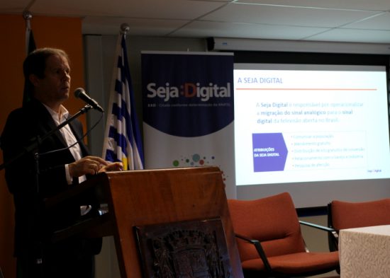 Em cerimônia realizada na manhã desta segunda-feira (11), com a presença do presidente da Seja Digital, Antônio Carlos Martelletto, o prefeito de Jacareí, Izaias Santana e o prefeito de São José, Felício Ramuth assinaram o Termo de Compromisso que prevê diversas ações de capacitação dos servidores municipais para que atuem como multiplicadores do processo de migração do sinal de TV, levando informação e orientação à população das duas cidades. O evento foi realizado na Prefeitura de São José dos Campos.
