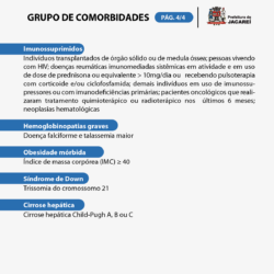Confira, a seguir, a lista com a descrição das comorbidades incluídas como prioritárias para vacinação, de acordo com o Plano Estadual de Imunização. (Clique na imagem para ampliá-la)