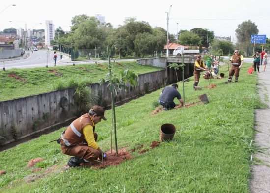 Profissionais da Secretaria de Mobilidade Urbana realizaram o plantio de mudas de árvores próximo ao Parque da Cidade, às margem do Córrego do Turi. Participaram também da ação além dos agentes de trânsito, profissionais da Secretaria de Meio Ambiente, educadores e sociedade civil.