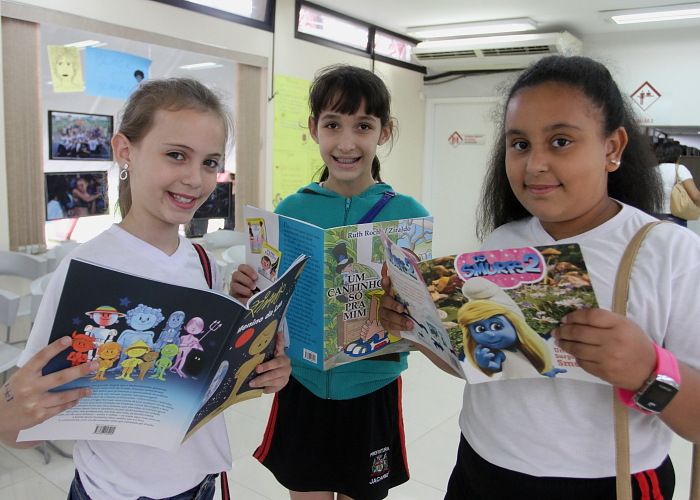 Ficar mais inteligente– “Quando a gente lê fica mais inteligente e melhora a nossa fala”. Essa foi a conclusão que chegaram as três alunas da EMEF José Éboli (São Silvestre) Maria Eduarda de Oliveira Apparecida, Isabela Gonçalves e Giovana Duarte. Para Maria Eduarda, tudo está muito interessante. “Nunca tinha visto uma feira assim. Nunca tinha conhecido um escritor antes. Quero voltar no sábado também”, comentou a garota.