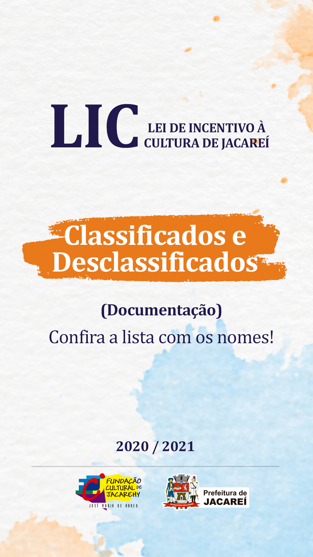Foi publicado nesta sexta-feira (19), no Boletim Oficial da Prefeitura de Jacareí, a listagem dos projetos classificados e desclassificados quanto à documentação da LIC (Lei de Incentivo à Cultura), edição de 2020/2021.