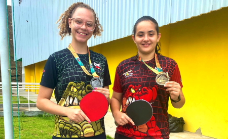 As atletas Maria Fernandes e Maria Eduarda Chiquetto, do Clube de Tênis de Mesa de Jacareí, conquistaram seis medalhas no TMB Challenge Plus Varginha (MG), disputado no último fim de semana. Foram duas medalhas de ouro, duas de prata e duas de bronze.