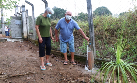 O momento é compartilhado também nas Chácaras Itapoã. Euclides Souza abre a torneira para festejar: “Hoje nós temos esse benefício, não tem coisa melhor do que ter água na torneira, na palma da mão”, disse.