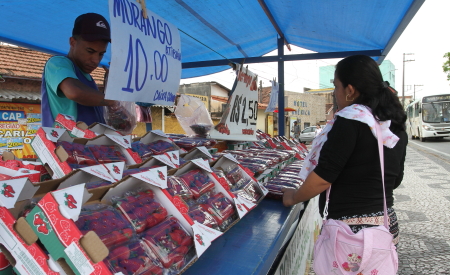 A partir desta segunda-feira (02) o tradicional programa ‘Ponto da Economia’, da Secretaria de Desenvolvimento Econômico, começou a comercializar morangos. (fruta da época). Foi definido o preço de R$ 2,50 a caixinha da fruta. Os pontos de venda funcionam de segunda a sexta, das 8h às 17h, e aos sábados, das 8h às 13h.