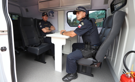 O veículo é equipado com uma mesa para auxílio da definição das operações, cadeiras confortáveis para transporte de efetivo, além de todo o equipamento necessário de radiocomunicação. A ideia é que a base faça a coordenação dos guardas distribuídos nas proximidades, proporcione suporte para os agentes e represente ponto de referência da corporação junto à população.