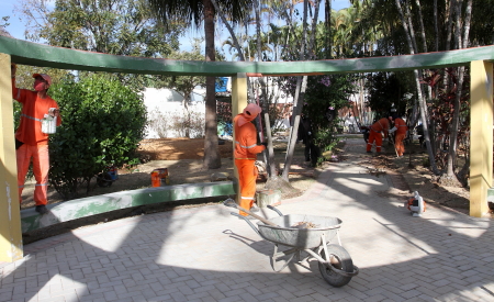 Foi feita uma revitalização total com a troca do piso, canteiros e pergolado, além de podas de árvore, instalação de mais quatro bancos novos, paisagismo, iluminação de LED pela Secretaria de Infraestrutura, estacionamento para cinco carros pelas Secretarias de Mobilidade e Infraestrutura, construção do muro de divisa com a creche, acessibilidade para pessoas com locomoção reduzida e reconstrução do muro que faz divisa com a empresa Casa Branca, pela Infraestrutura.